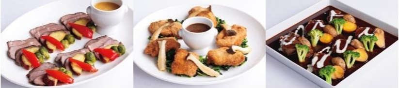 ❶国産牛もも肉のローストビーフ フォンのソース ❷ビーフカツレツ デミソース ❸国産牛赤ワイン煮込
