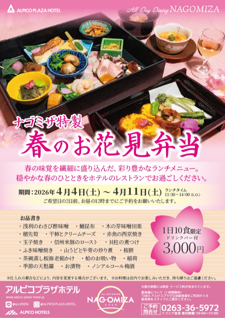 春の暖かい日差しの中、ご家族、ご友人、会社のお仲間とお誘いあわせのうえナゴミザにお越しください。